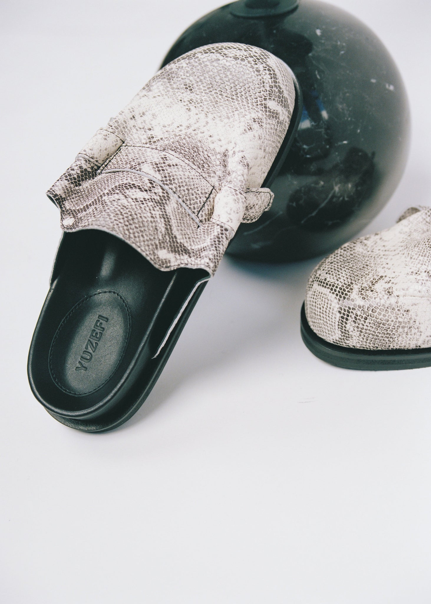 MOCHI SLIDES - EMBOSSED ASH SNAKE LEATHER