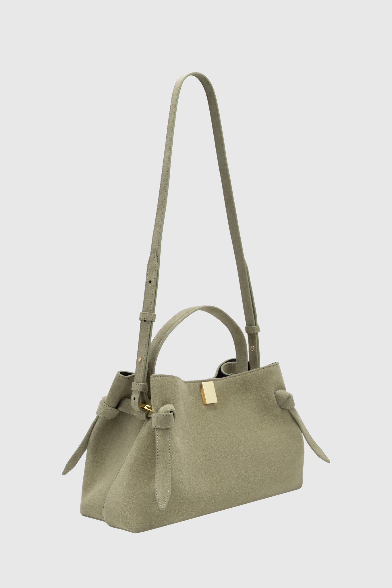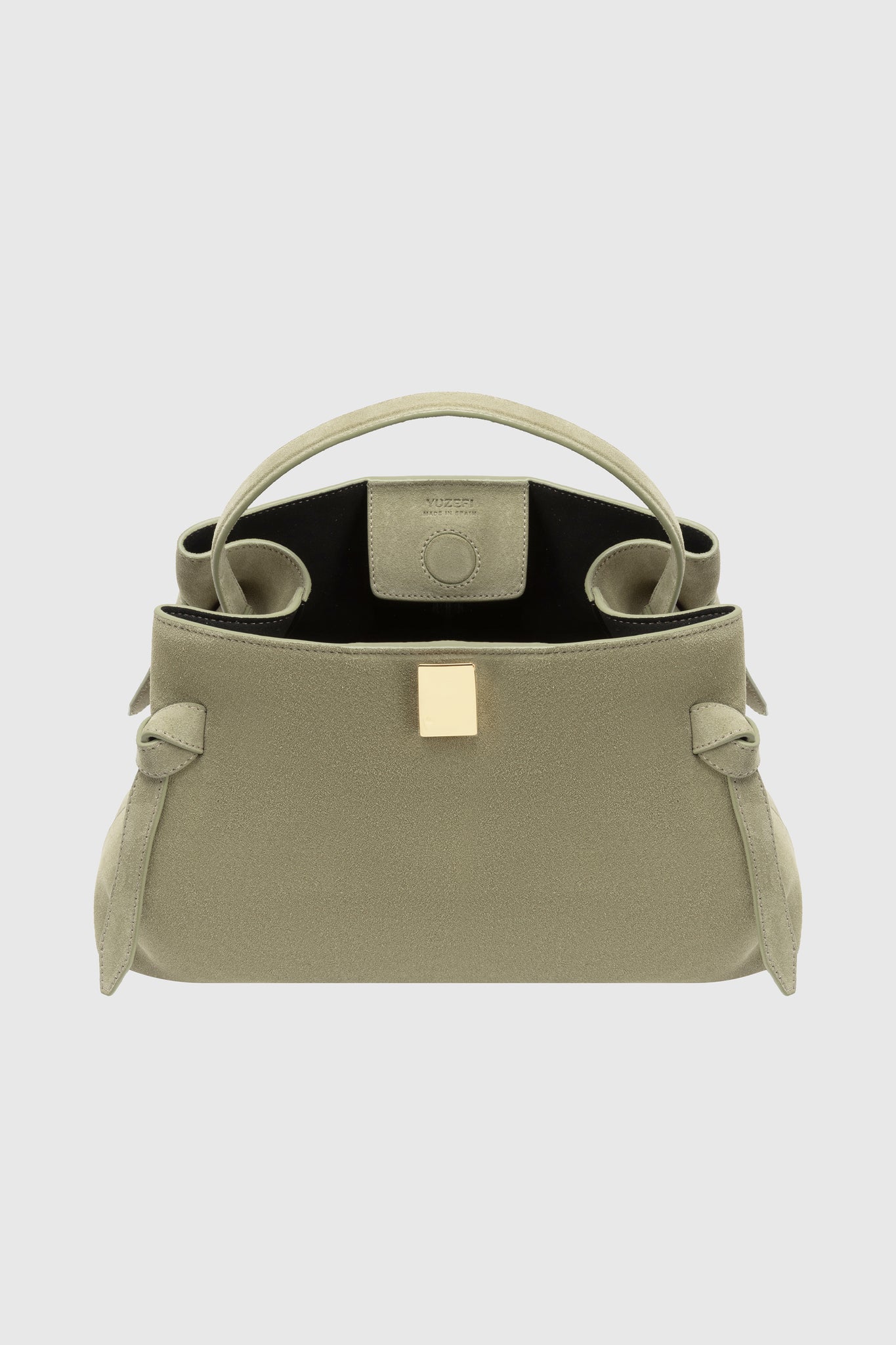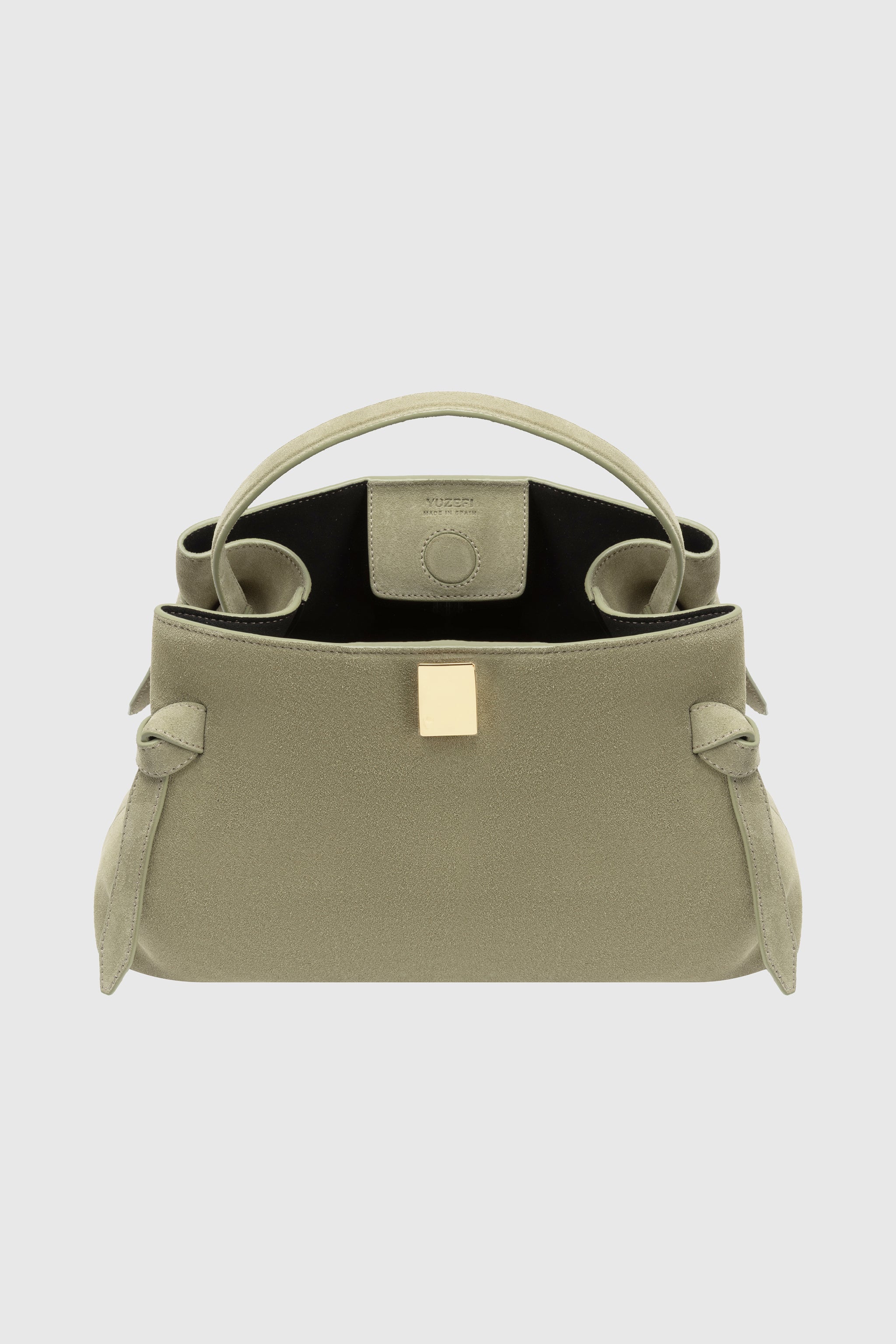 Gyoza handbag, crafted from Olive Suede.