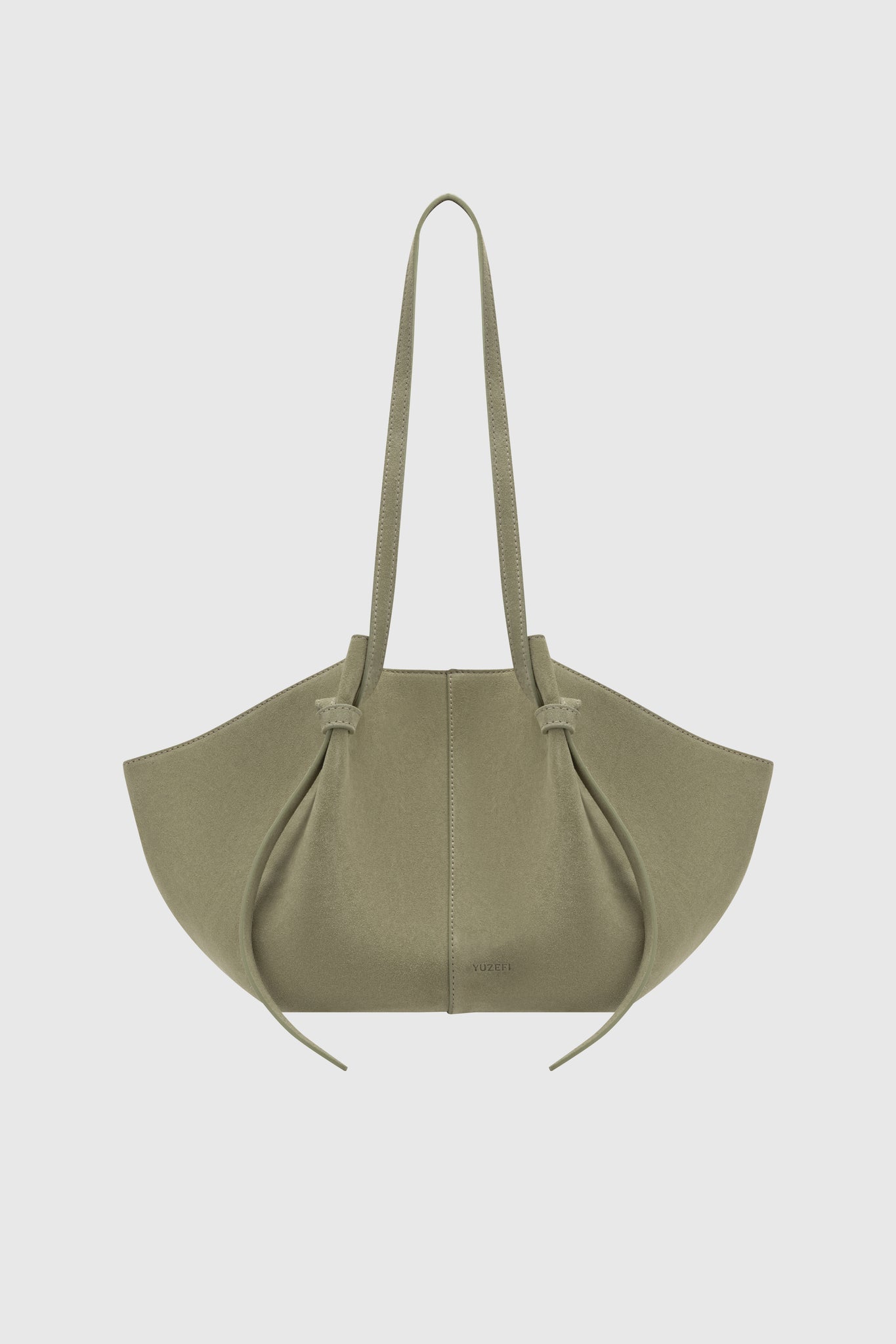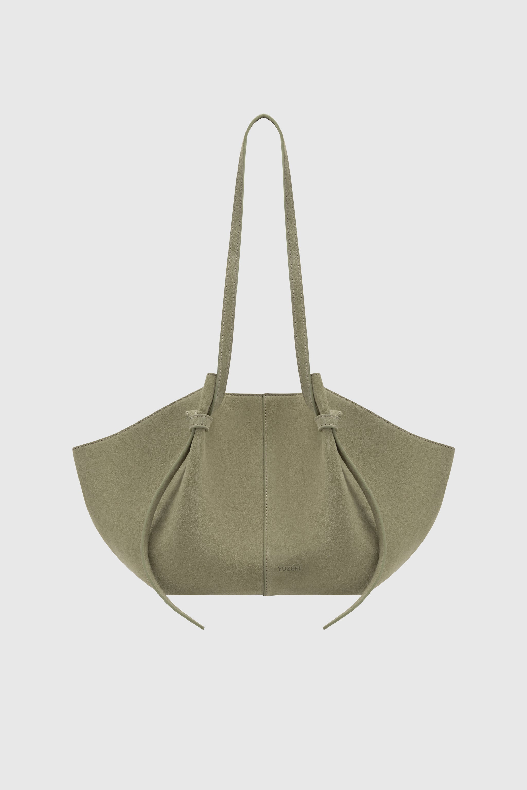 Mochi tote bag, crafted from Olive Suede.