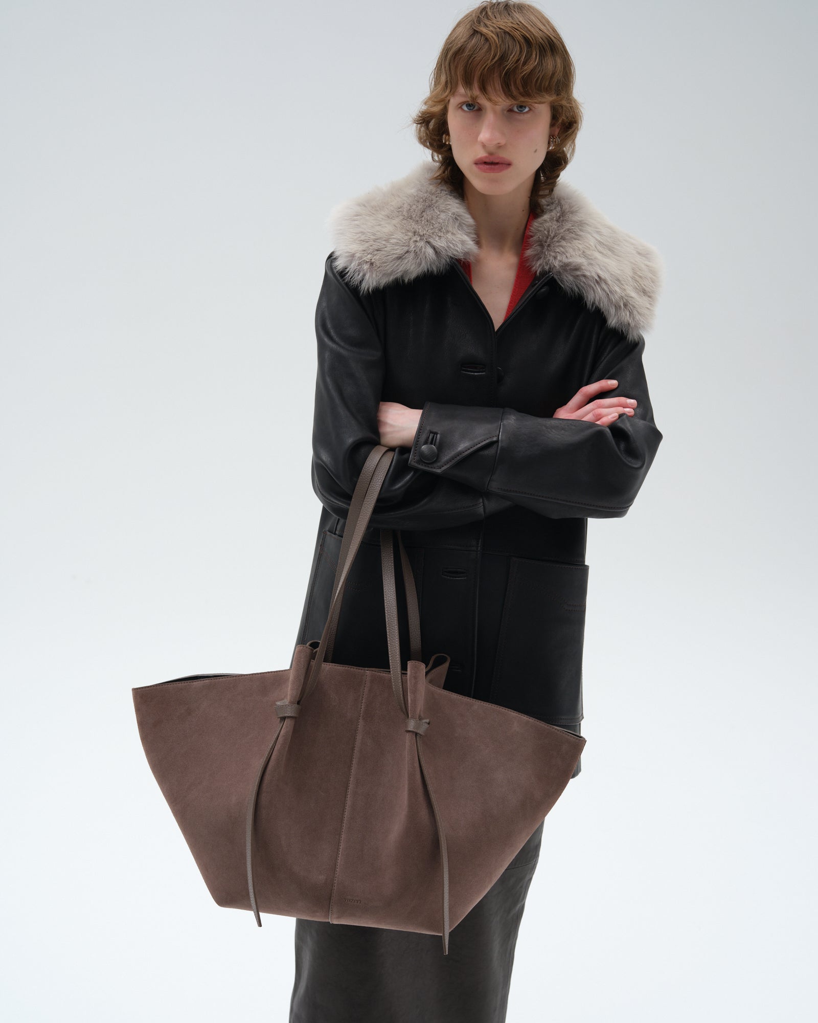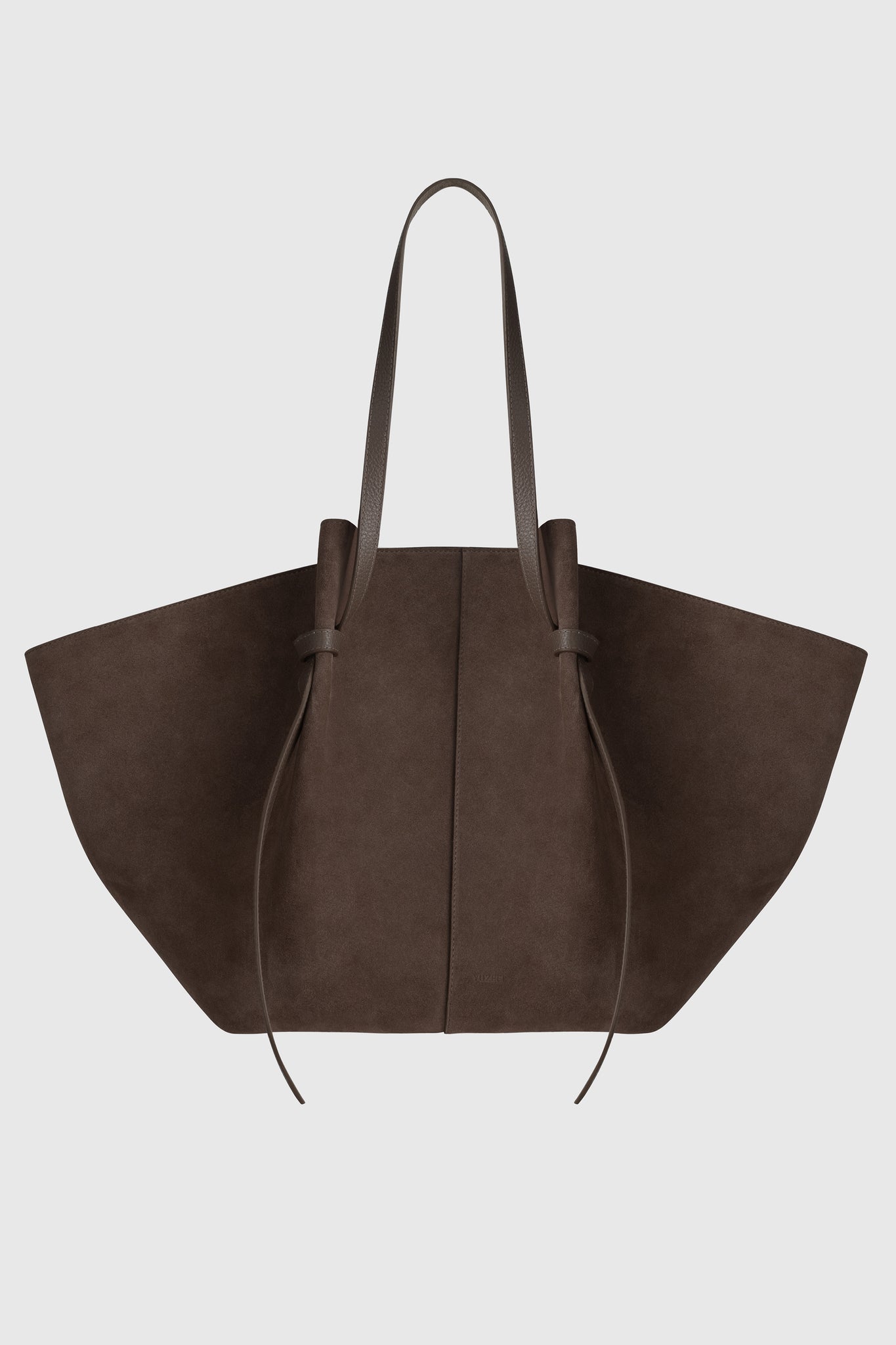 XL Mochi tote bag, crafted from Nutmeg Suede.