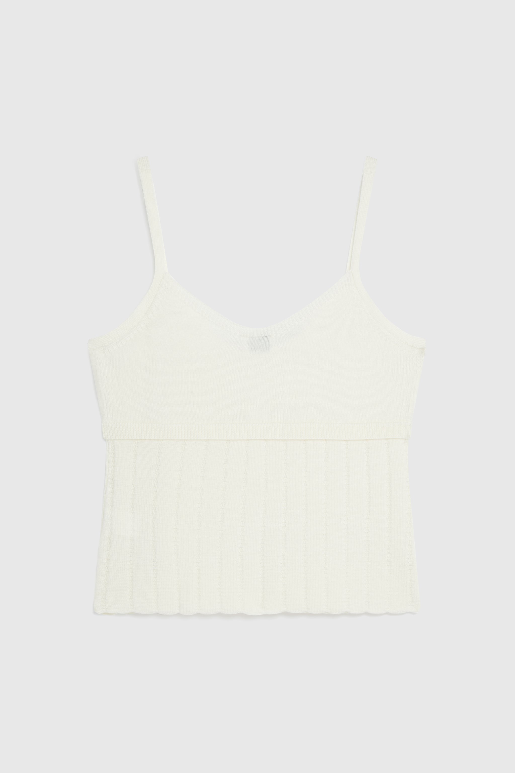 A refined Merino knit strappy top with a clean, minimal silhouette.