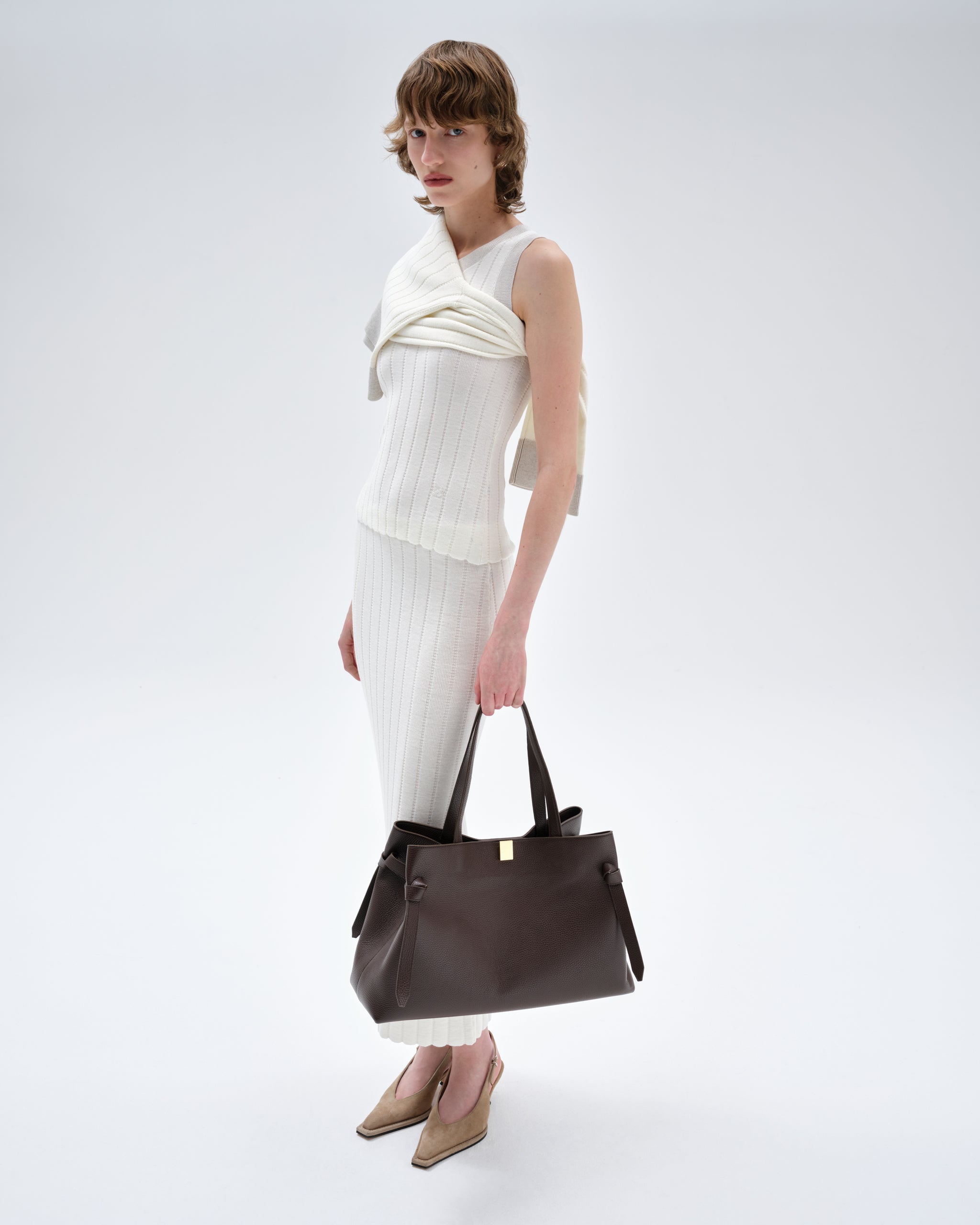 A fluid Merino knit maxi skirt defined by its clean, minimal silhouette.