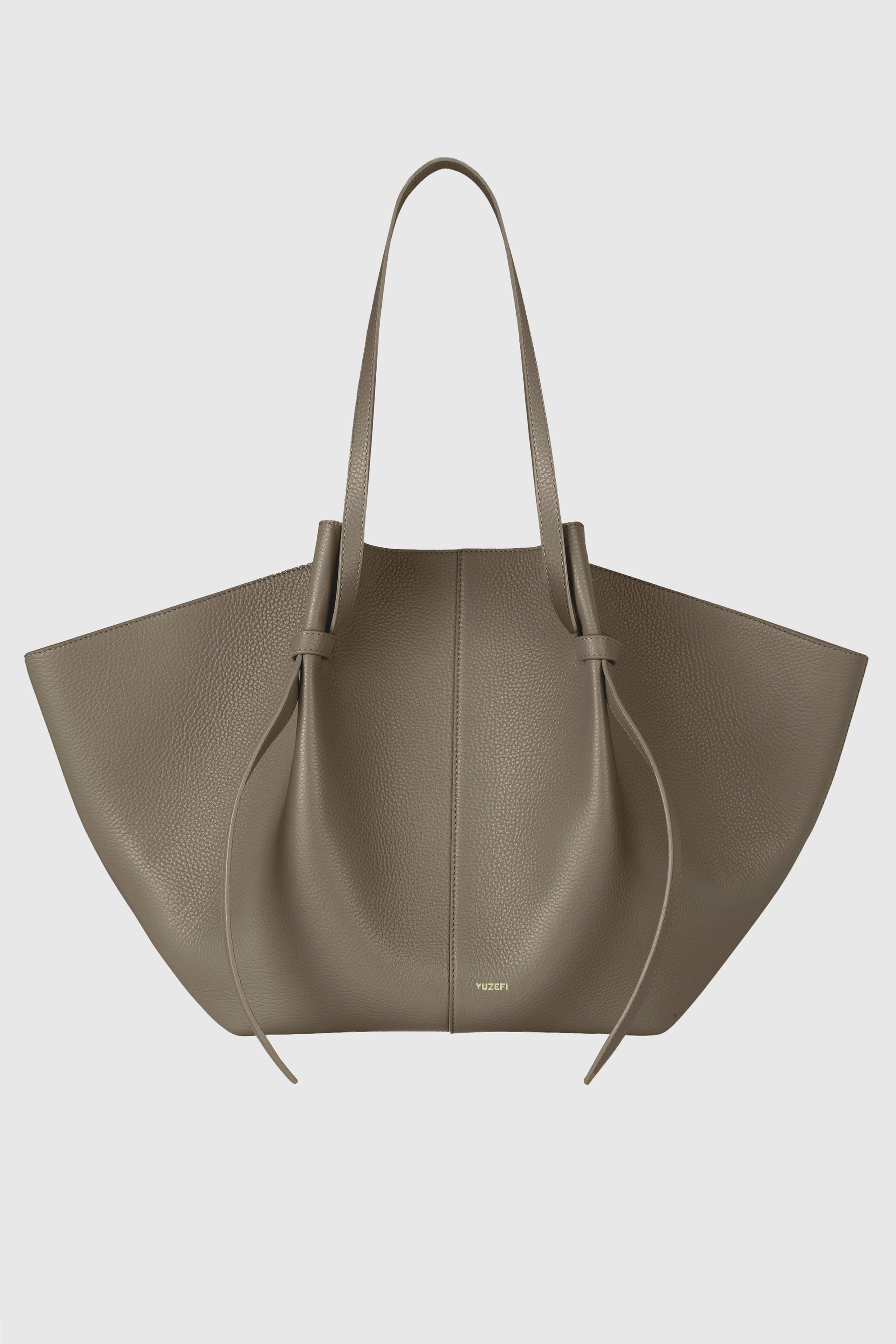 XL Mochi tote bag, crafted from Taupe Pebble Grained Leather.