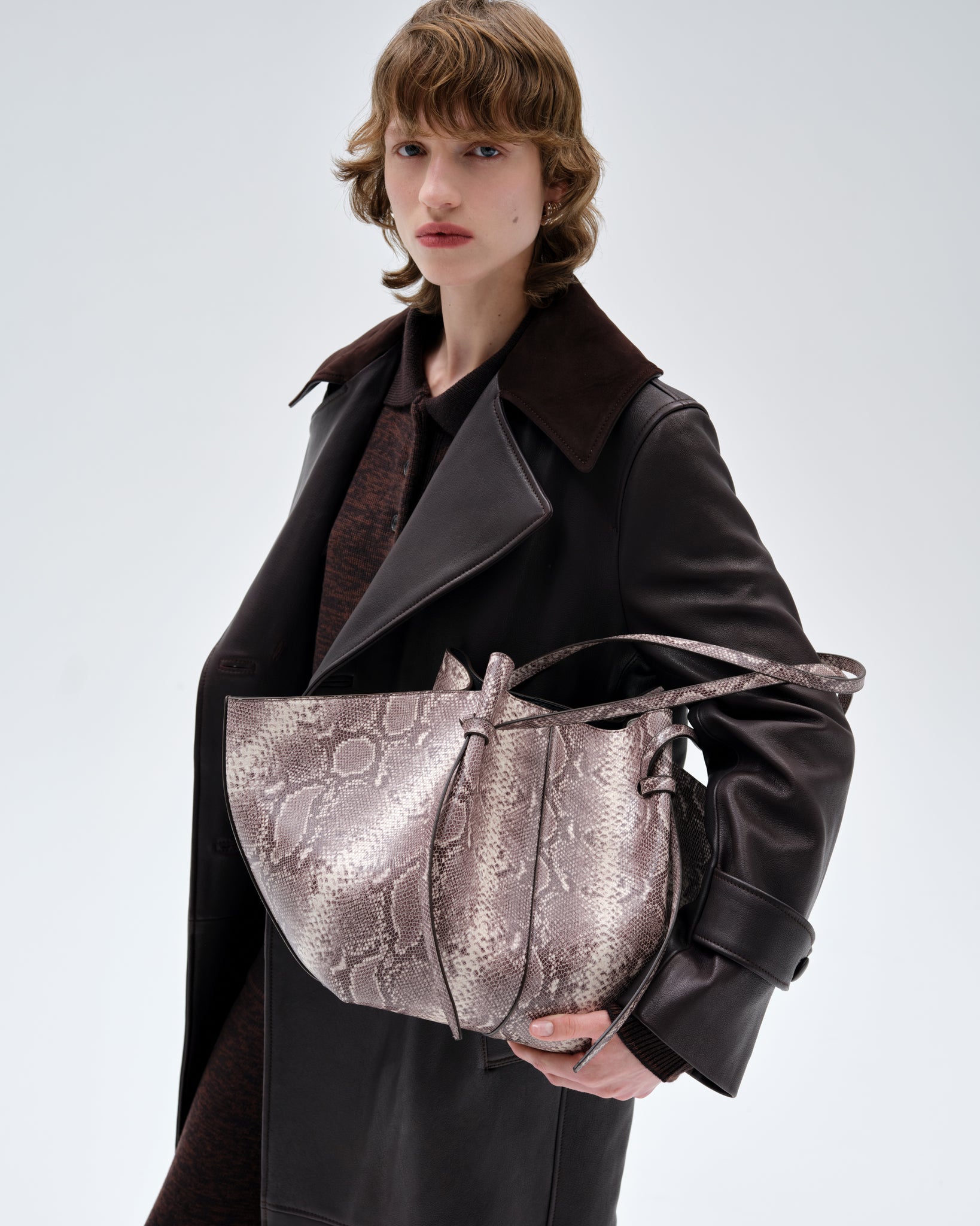 Large Mochi tote bag, crafted from Embossed Ash Snake cowhide leather.