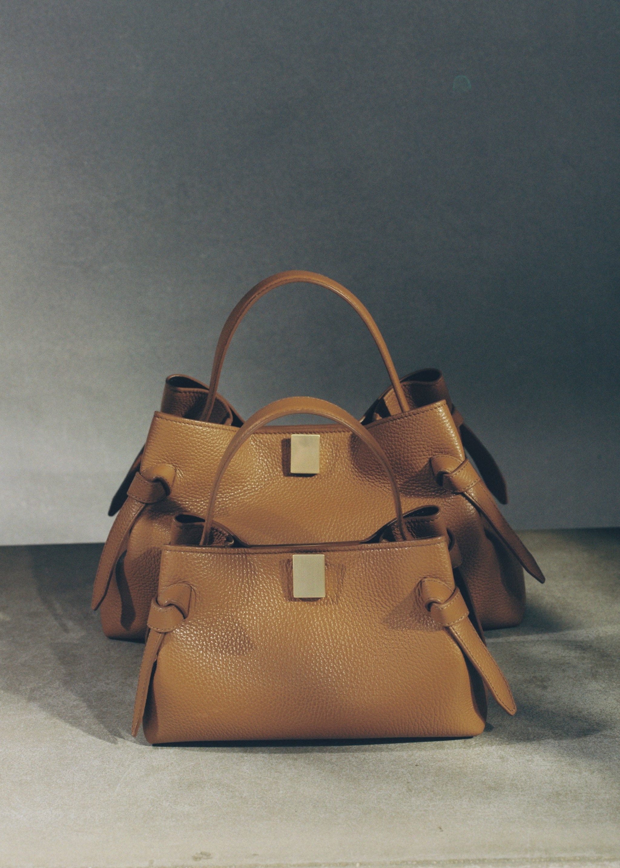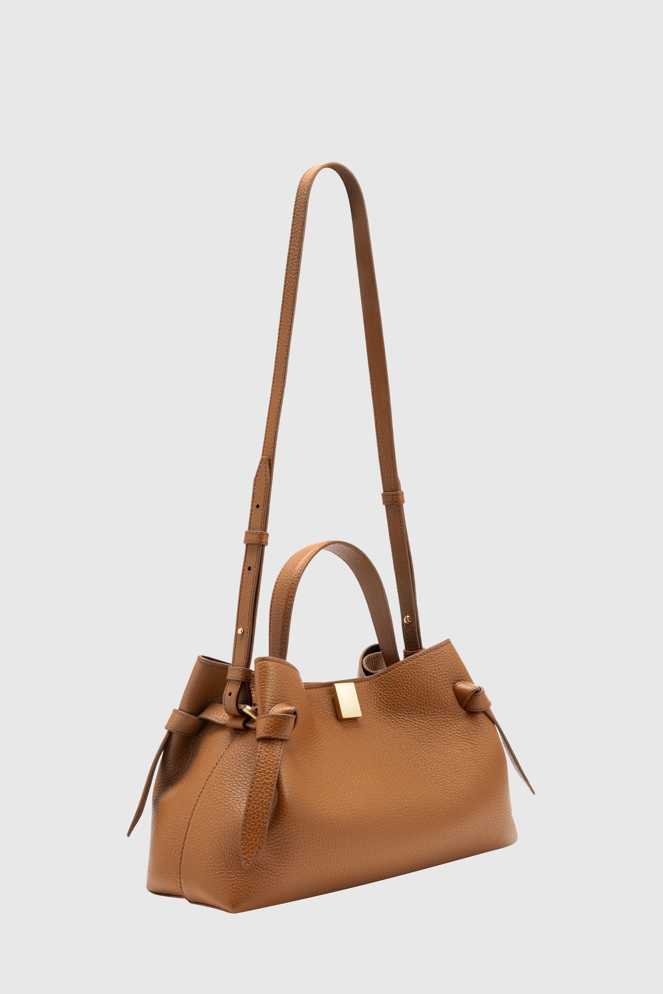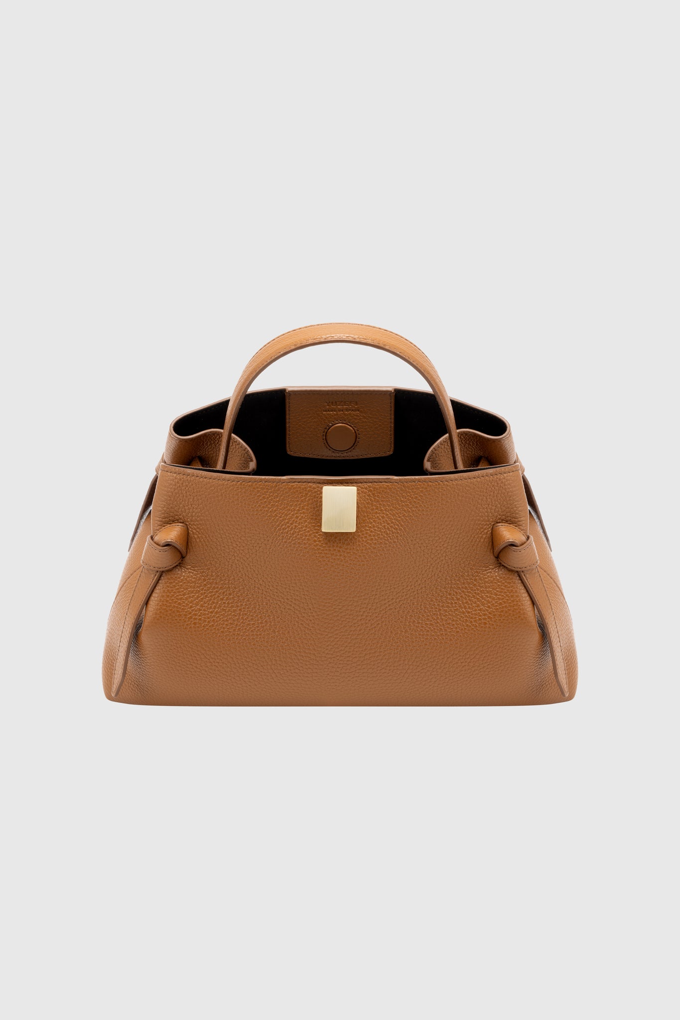 Gyoza handbag, crafted from Hazel Pebble Grained Leather.